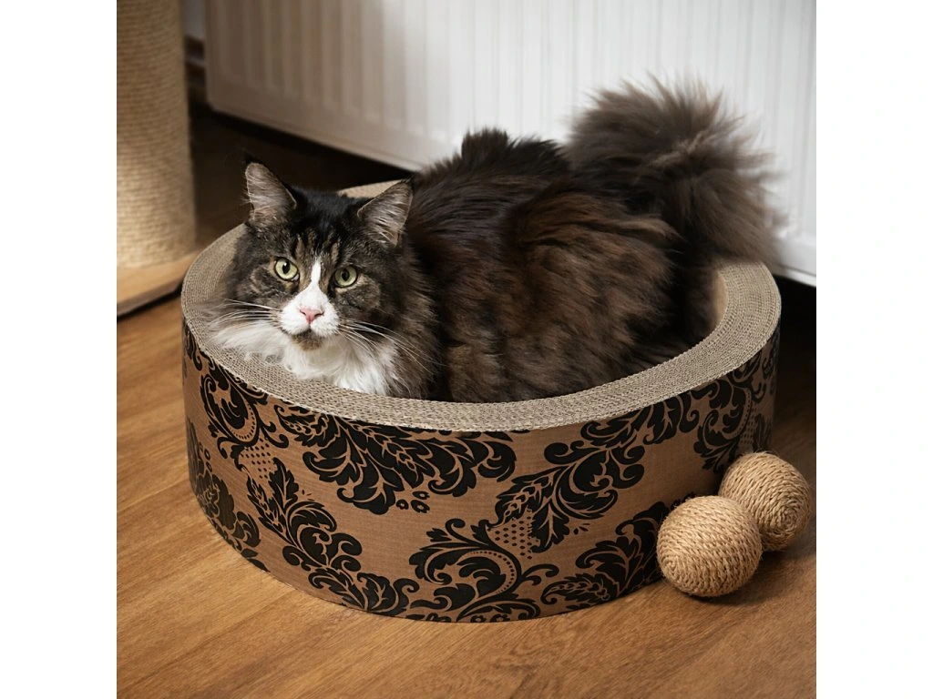 Tento kulatý škrabací pelíšek propojuje pohodlí a funkčnost v jednom. Poskytuje ideální prostor pro odpočinek i přirozené broušení drápků.